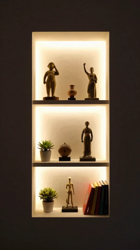 With the right lighting, even the simplest decor can take center stage, transforming your niche into a captivating focal point.