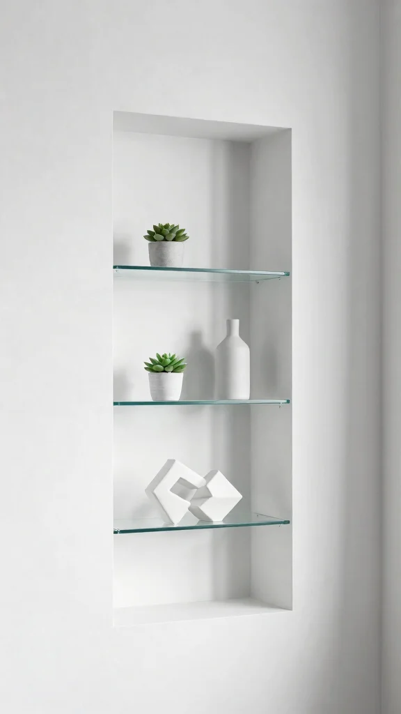 For those who appreciate simplicity, a minimalist glass shelf niche is a stunning addition that emphasizes elegance. This design allows your decor to shine unobstructed, creating a clean and airy feel in your space. Opt for clear or frosted glass shelves that lend a lightweight appearance while providing a modern touch.